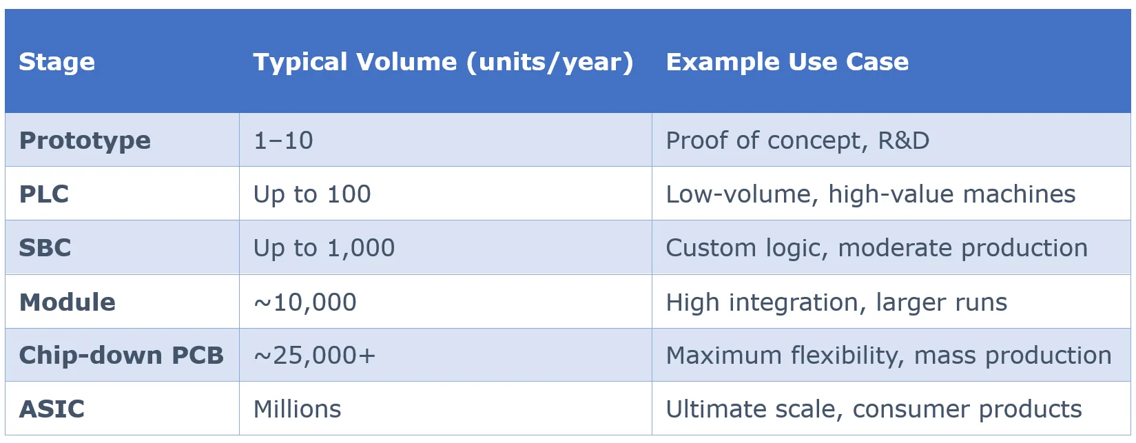 If you’re producing more than 100–1,000 units/year, or PLC costs are a significant part of your BOM, it’s time to run the numbers.